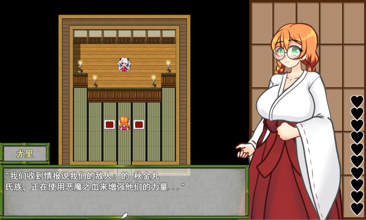 Mio 是一个身材丰满、戴着眼镜的忍者,她被派去执行刺杀任务,关系到整个国家的命运。如果她失败了,不仅是她自己,每一个女性都将失去自由。这是一个简单而淫秽的 RPG 游戏,具有隐蔽机制和无需刷怪的特点,可以背刺敌人来跳过战斗。