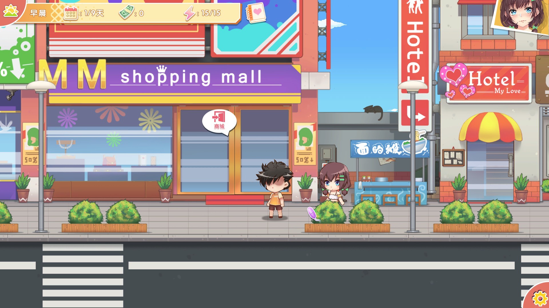 这是一款横版模拟+GAL元素的游戏。