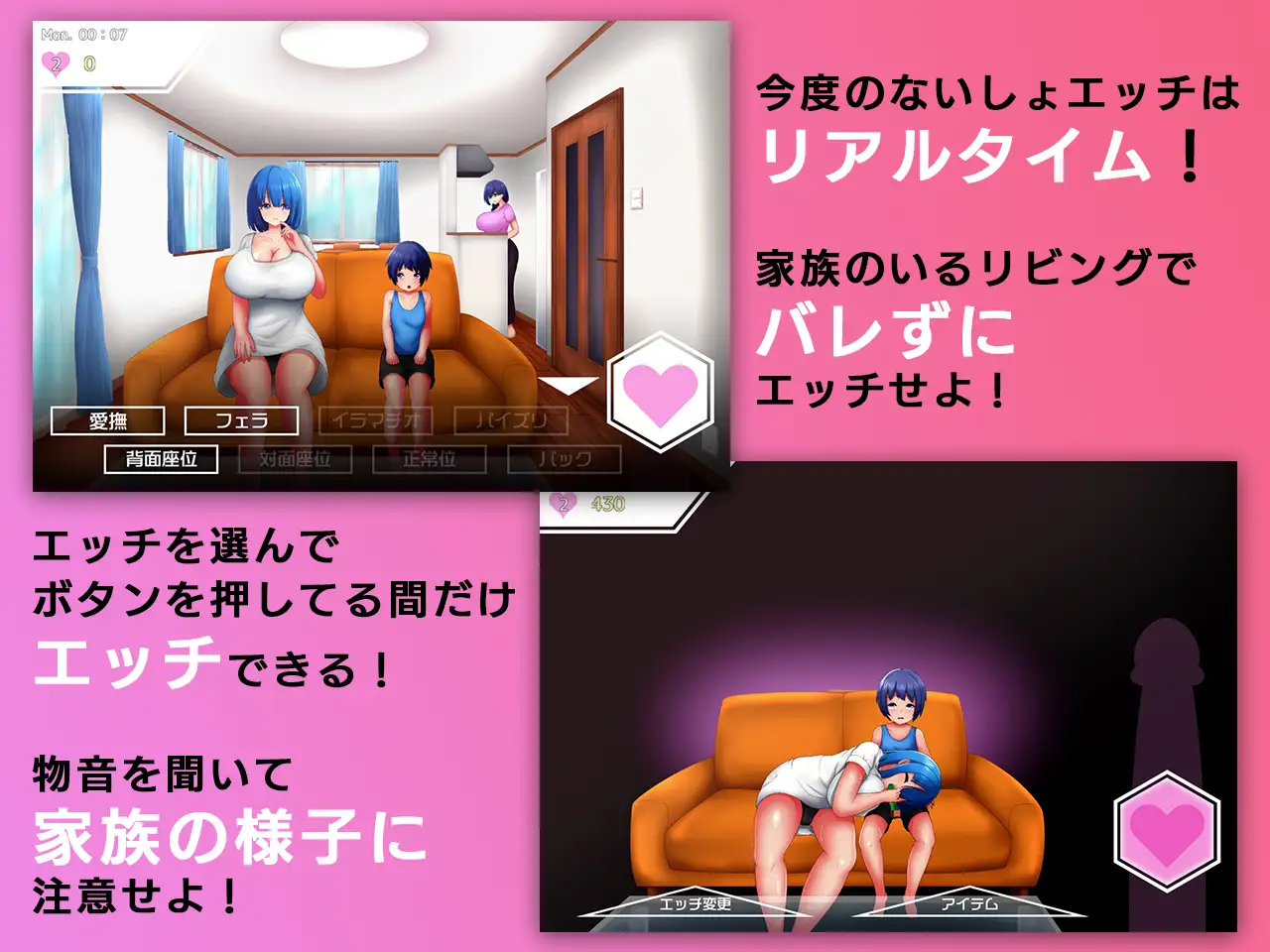 ■躲避家人的观察偷偷和姐姐做爱,每关达到积分要求就行。选择好动作后用鼠标左键或者按住Z键H。