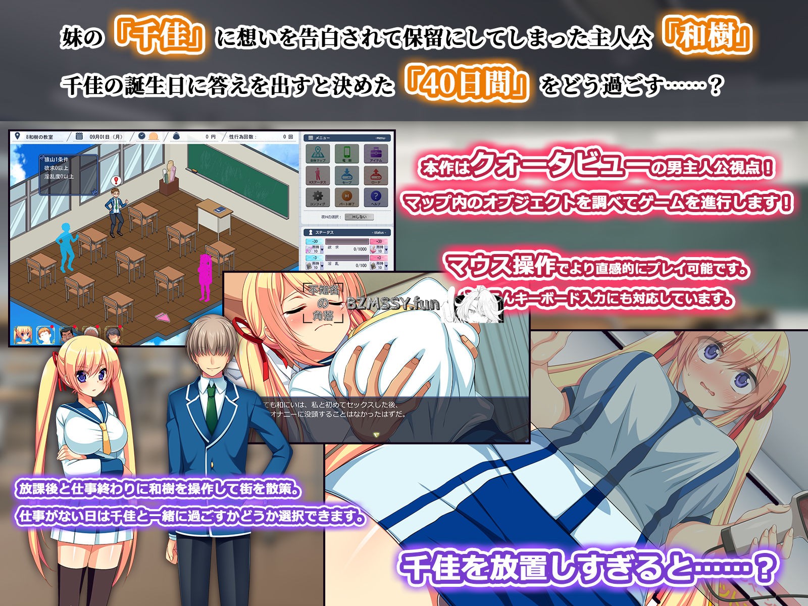 打工或与寝取妹妹交谈,触发事件,操作哪个男人寝取千佳,成为游戏的目标。