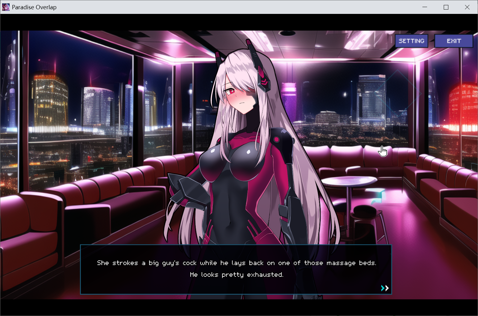 你扮演“Barman”,一名在“天堂”海滨酒吧工作的调酒师,位于洛杉矶星城,一个充满各种人的赛博朋克大都市!生活在赛博朋克大都市中,您可以在这里与女孩互动,为她们提供饮料并照顾这些女孩,你愿意吗?