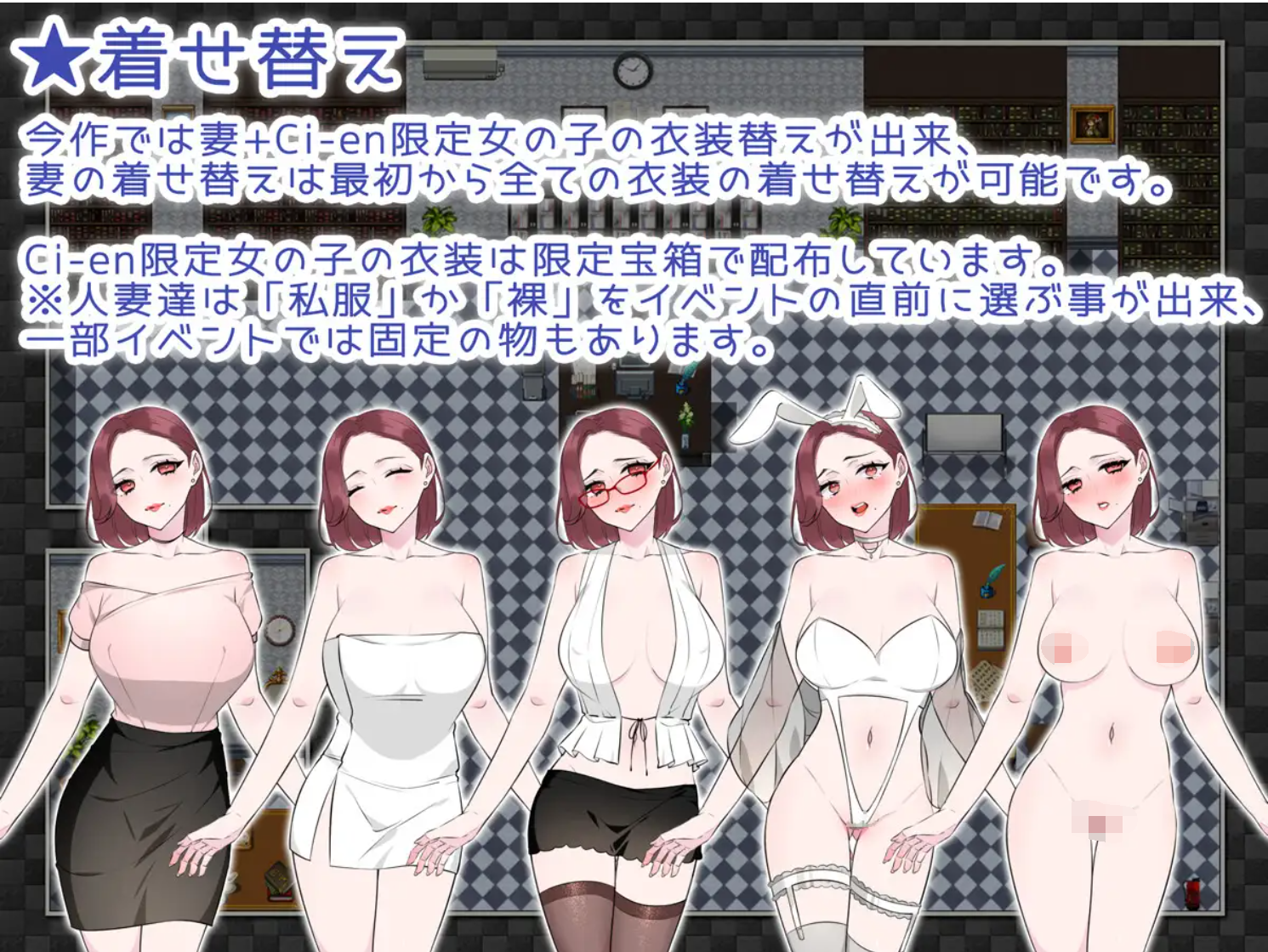 在本作中,可以更换妻子和Ci-en限定女孩的服装,