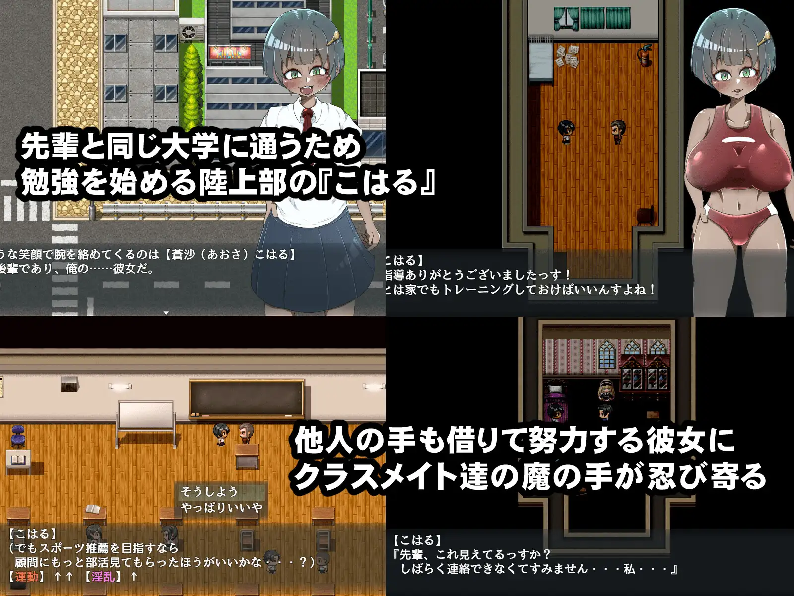 在提升学业、运动和淫荡状态的同时,努力争取大学录取的简单培养类RPG游戏。