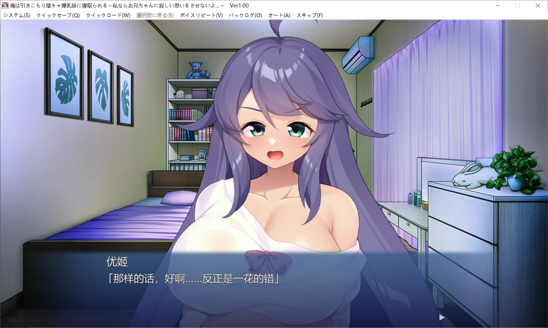 不知何时,我从睡梦中醒来,感到一丝不对劲,发现妹妹“よもぎ”正跨坐在我身上。
