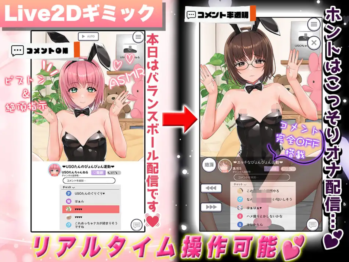 这次使用Live2D展示了兔女郎和贫乳的胸部闪烁。