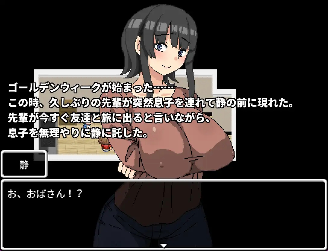 前輩她說接著要跟朋友去旅行,所以強硬地把她兒子塞給靜,讓靜照顧。