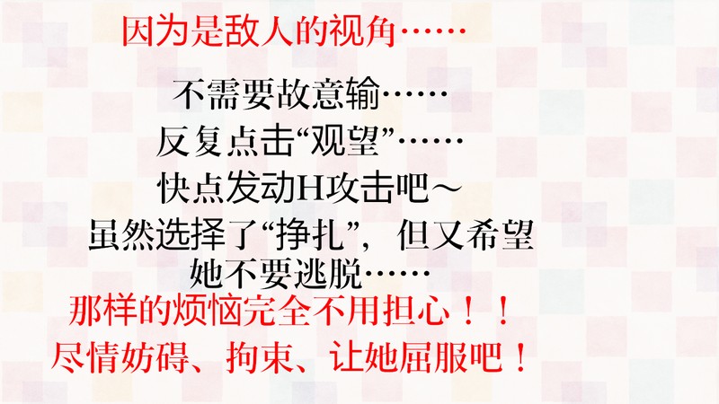 「女主角因色气减益效果干扰,败给本不可能输的对手」——喜爱此类情境的玩家,请务必一试!!