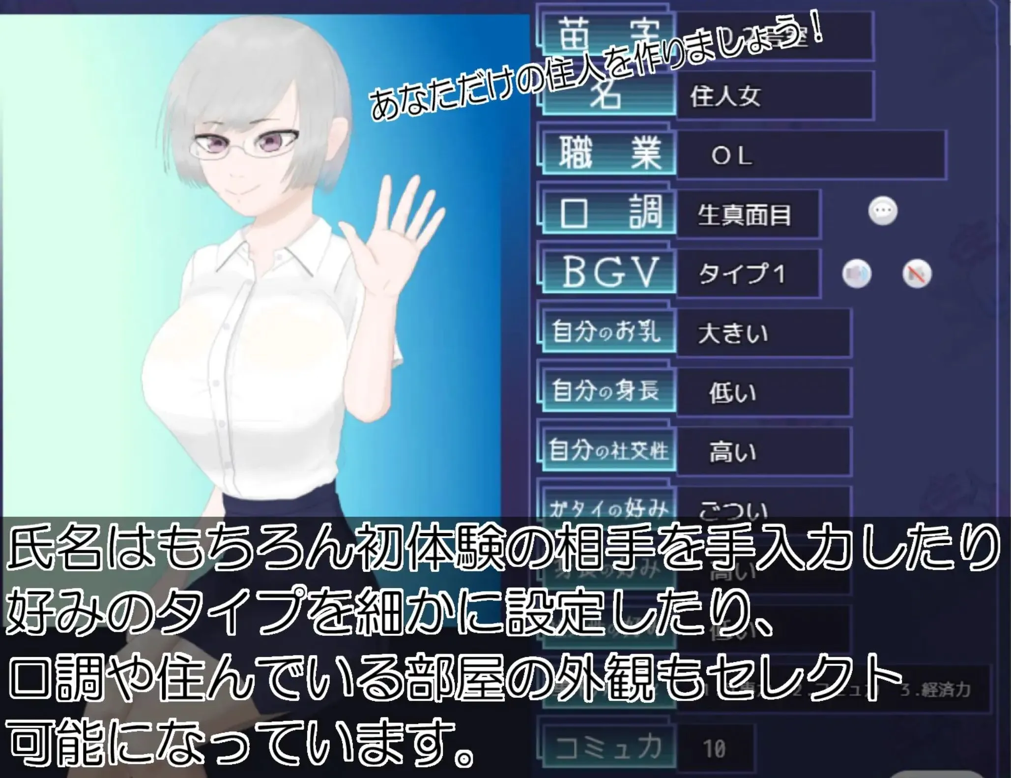 男女各 3 名的居民们将根据设定的喜好、性格与贞操观念,逐步改变彼此的人际关系。