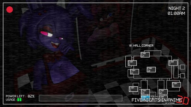FNiA3D 是一款点击式生存游戏,你将扮演 2025 年动漫展上的一名保安,其中有设计暗示性的电子动画来娱乐御宅族,并在他们阅读漫画、观看动漫和讨论日本动画中所有女孩角色中谁的胸部更大的时候偶尔举办音乐会。你负责夜间值班,独自一人在你的小办公室里,必须使用摄像头和门避免被电子动画抓住。但要小心,你的力量是有限的!
