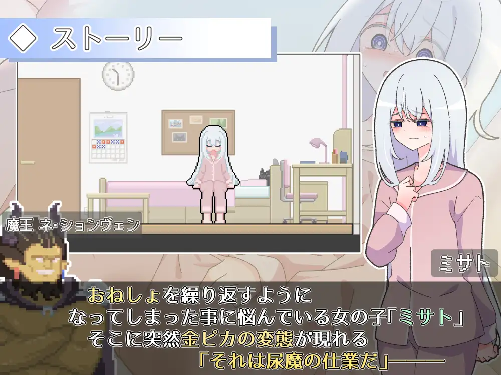 女孩「美里」正为自己开始频繁尿床而烦恼不已。