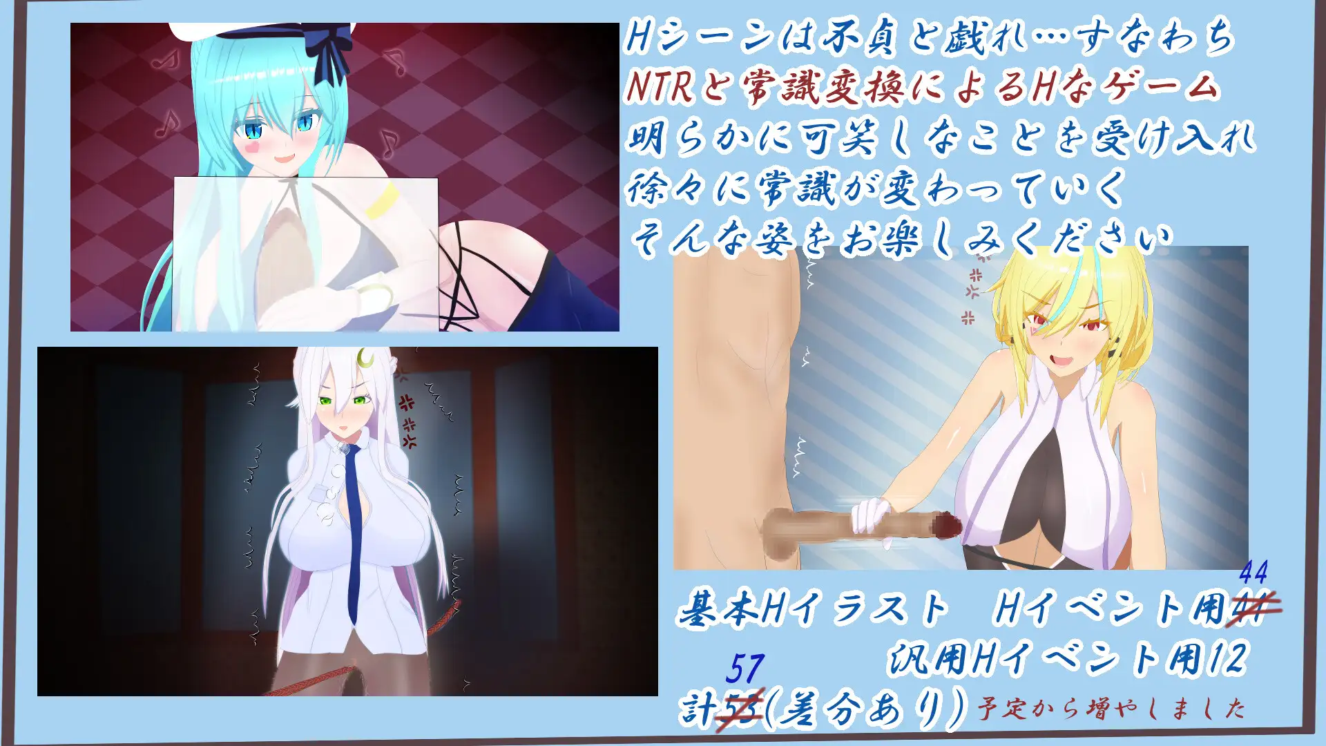 ・战斗中性骚扰H:12种(3个阶段,基本CG12张+差分)