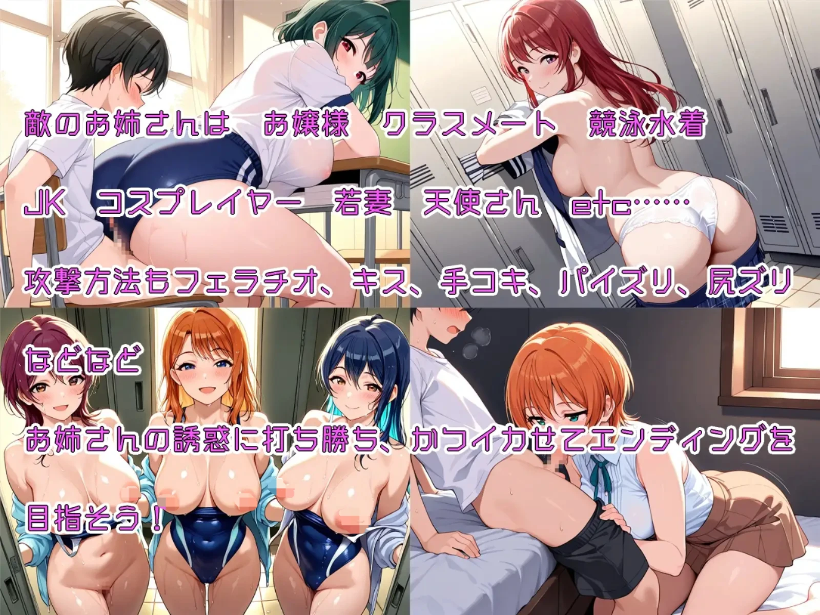 充分运用 AI 生成图像,为敌方角色的每一种攻击模式都配备了不同的 CG!每个角色平均准备了 20 张以上的 CG!各种各样的大姐姐会发动形形色色的攻击!色情 CG 超过 300 张!(实在数不清了)