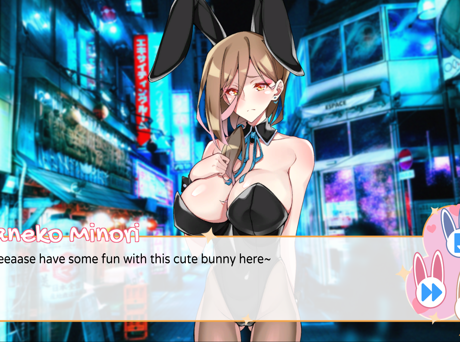 游戏流程为上班领钱,下班逛窑子,循环往复。俱乐部四名兔女郎排班不同,每天站台的兔女郎角色和数量都不一样,想要触发对应角色的结局需要在同一存档中由该角色进行三次VIP服务。而想触发服务,必须在同一游戏中获胜若干次(每一类游戏触发获胜任务的前置次数和完成任务需要的次数都不一样)。